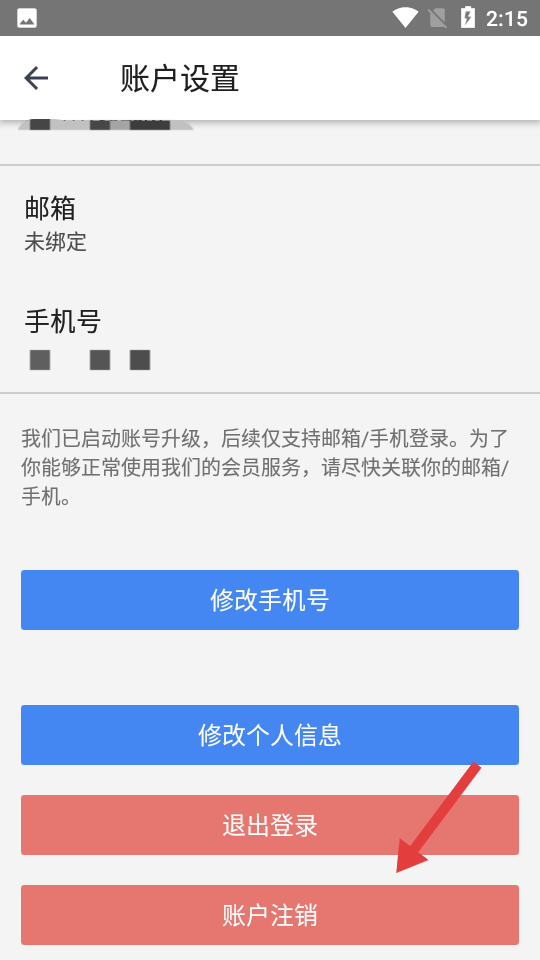 4、在账户设置页面点击【账户注销】,完成注销操作。