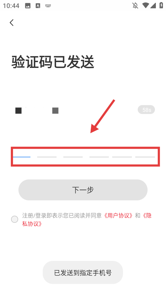 4、在验证码页面输入收到的验证码,点击【下一步】完成登录。