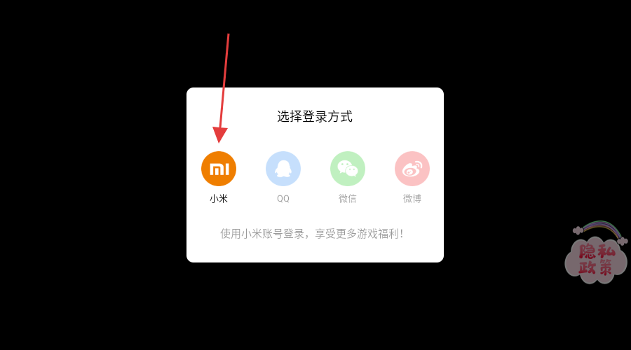 2、在登录方式选择界面,根据自身需求选择【小米】等登录方式,如选小米账号登录可享更多福利。