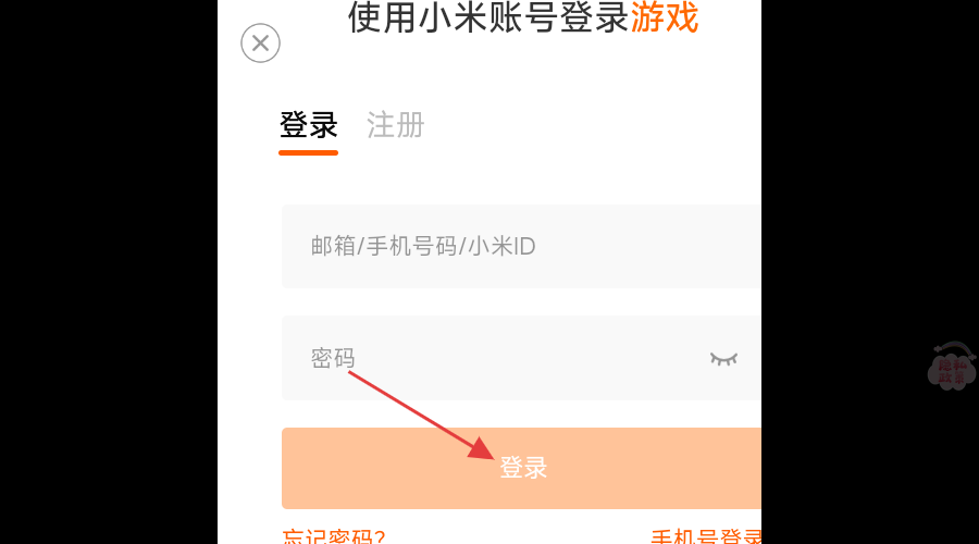 3、在小米账号登录界面,输入【邮箱/手机号码/小米ID】和密码,点击【登录】按钮进入游戏。