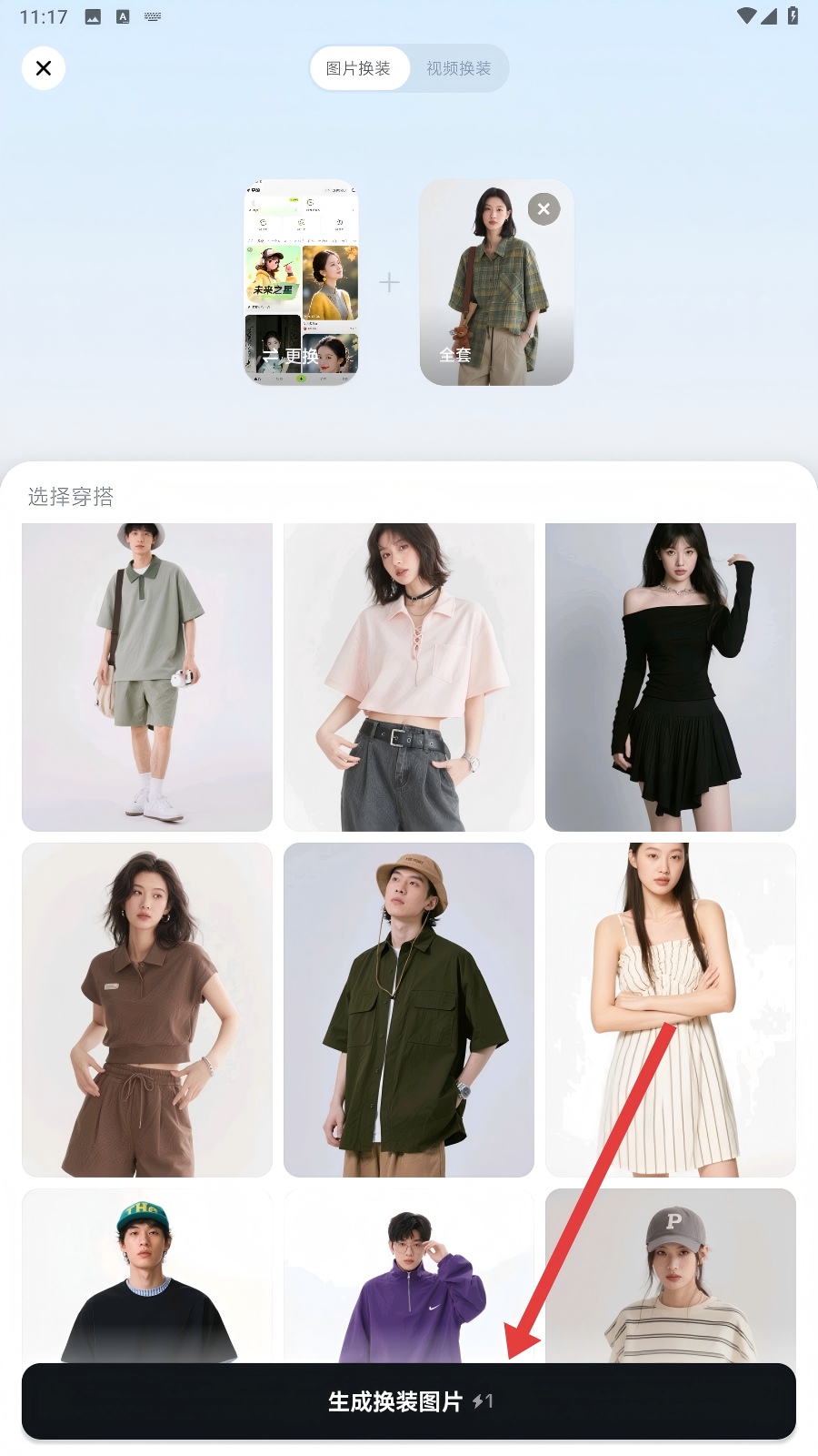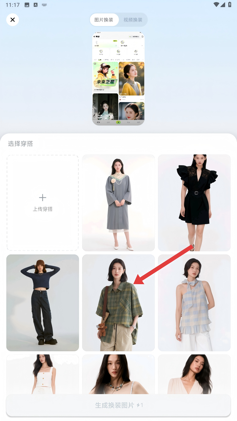 4、选好穿搭样式,点击【生成换装图片】,就能让照片换上心仪穿搭,轻松实现虚拟换装自由哦。