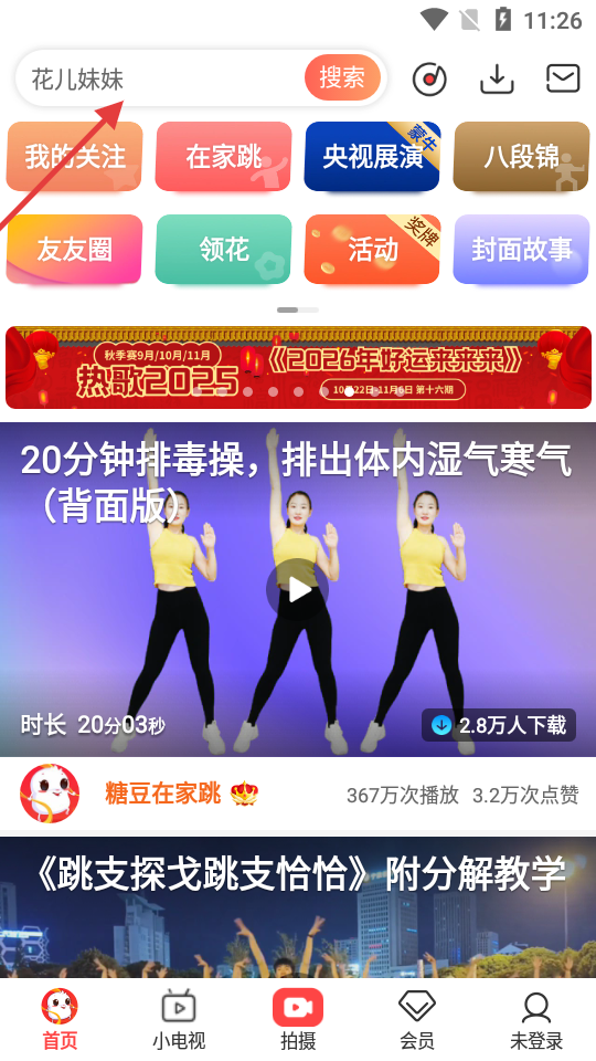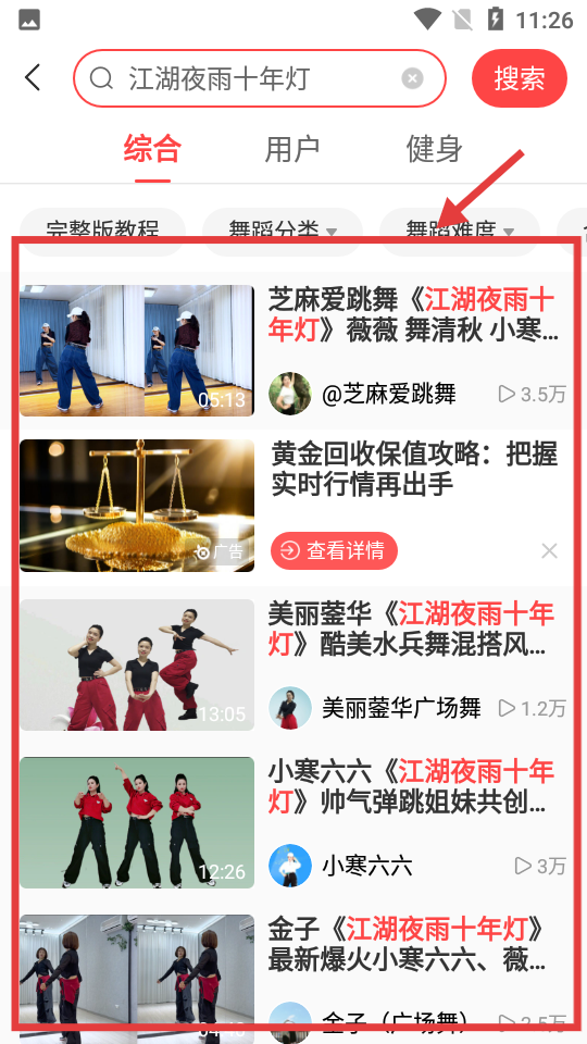2、输入想要的舞蹈或歌曲名称,点击【搜索】获取结果。