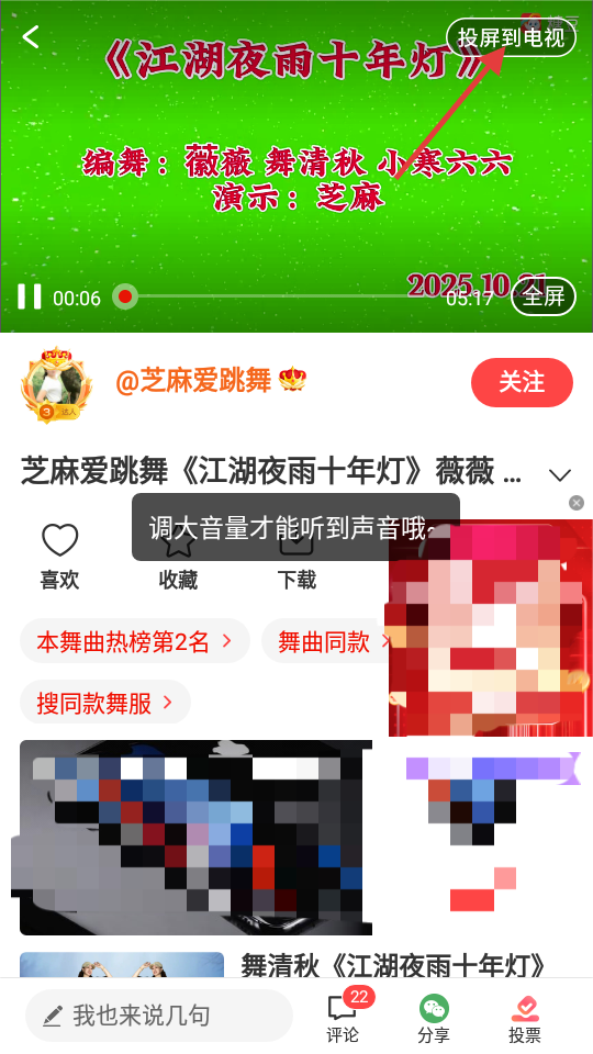 4、点击【投屏到电视】,将舞蹈视频投屏观看。