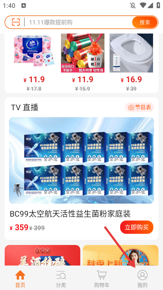 1、在软件首页,点击底部【分类】,进入商品分类页面。