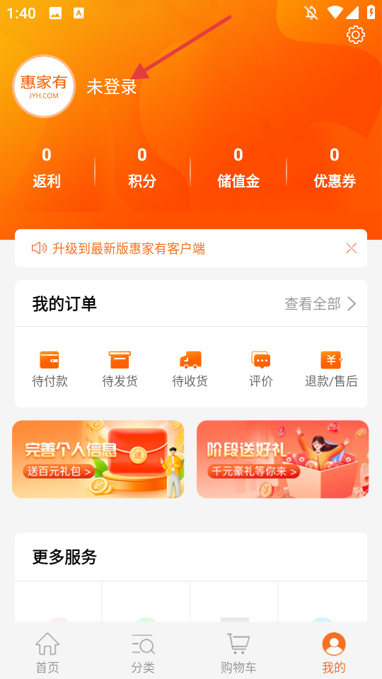 2、点击【未登录】区域,进入登录界面。