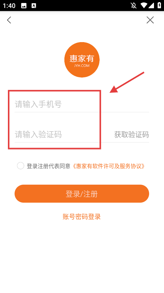 3、输入手机号和验证码。