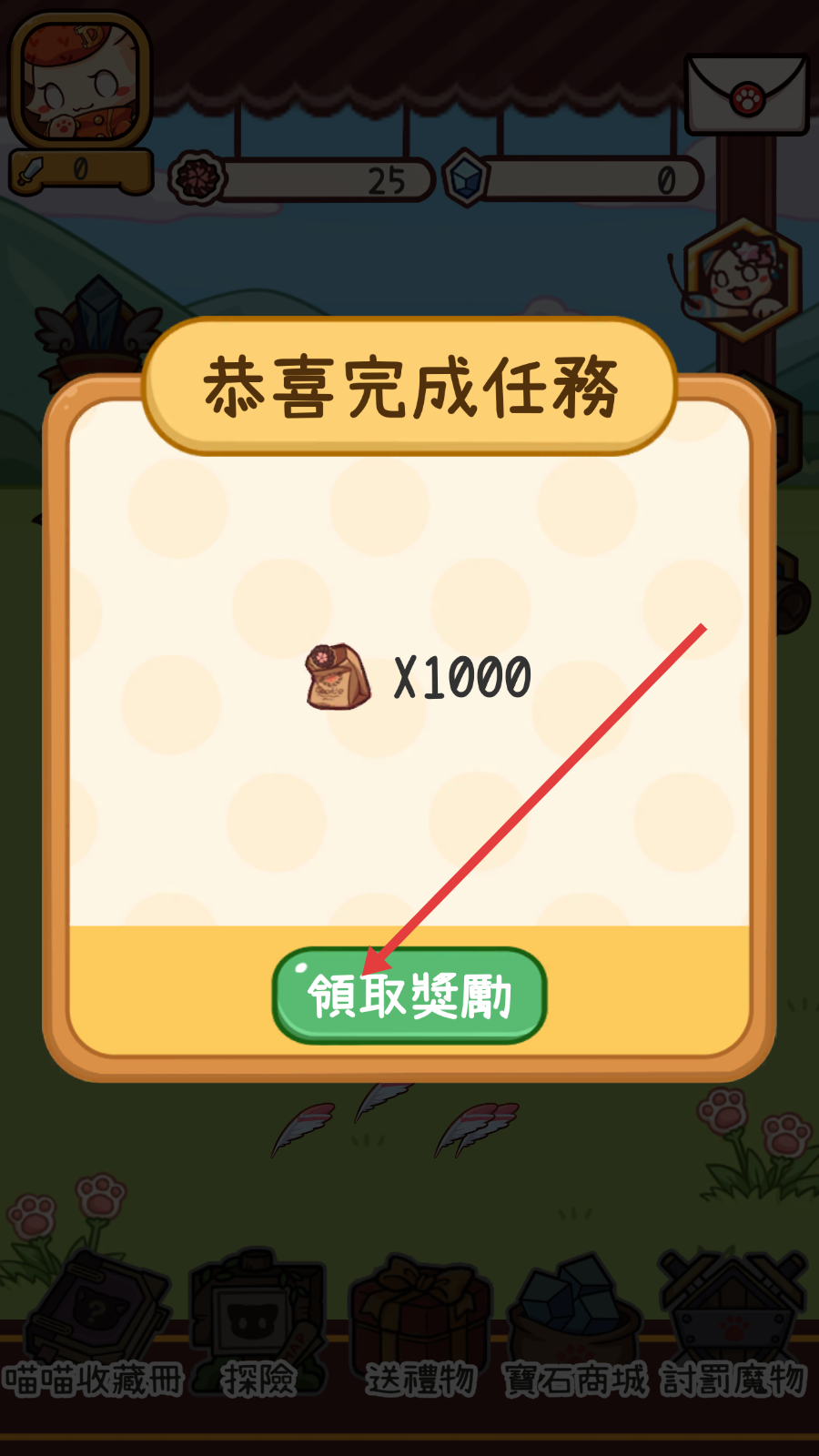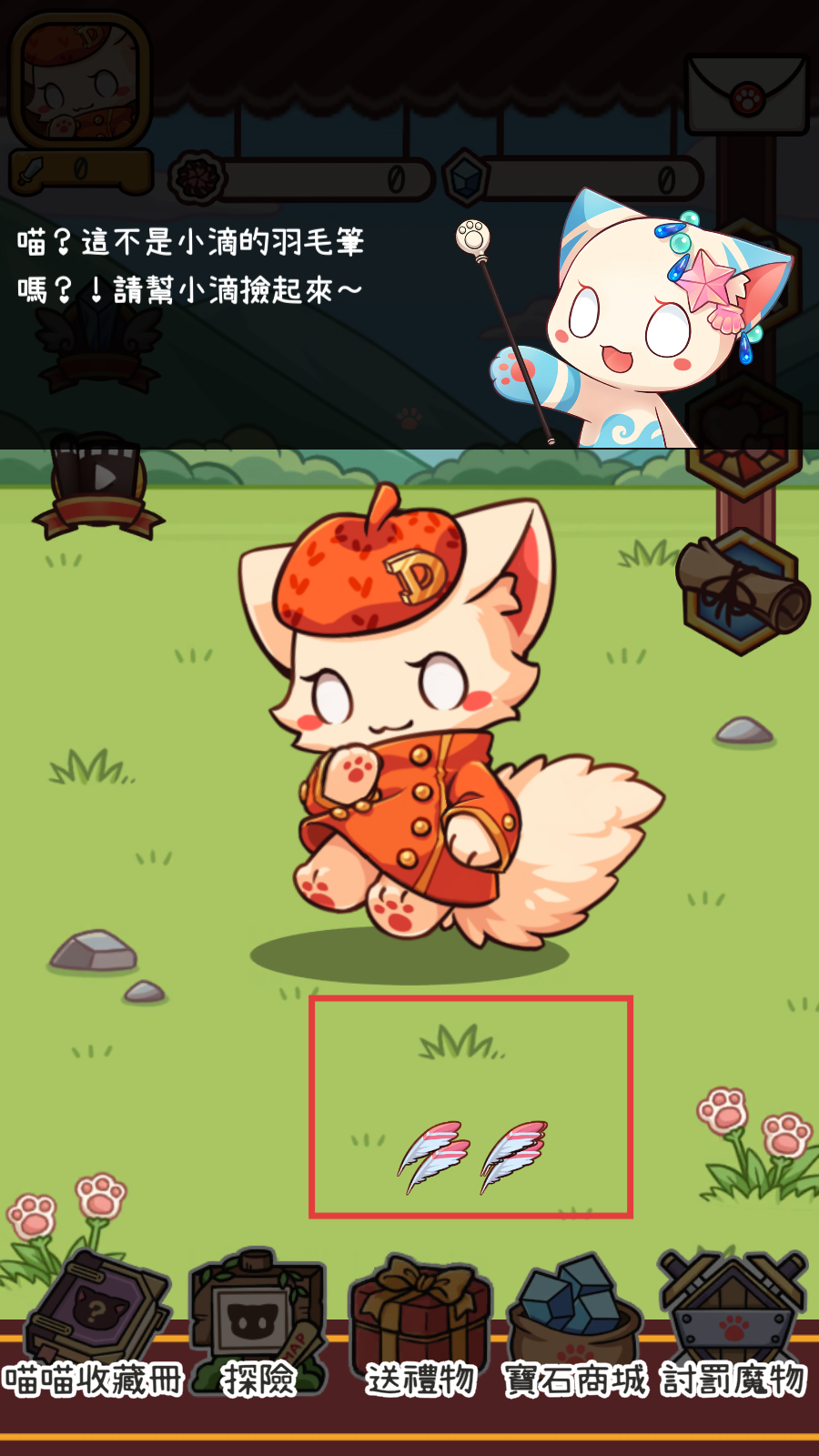 2、帮助小猫捡起掉落的羽毛笔,可以获取收益。
