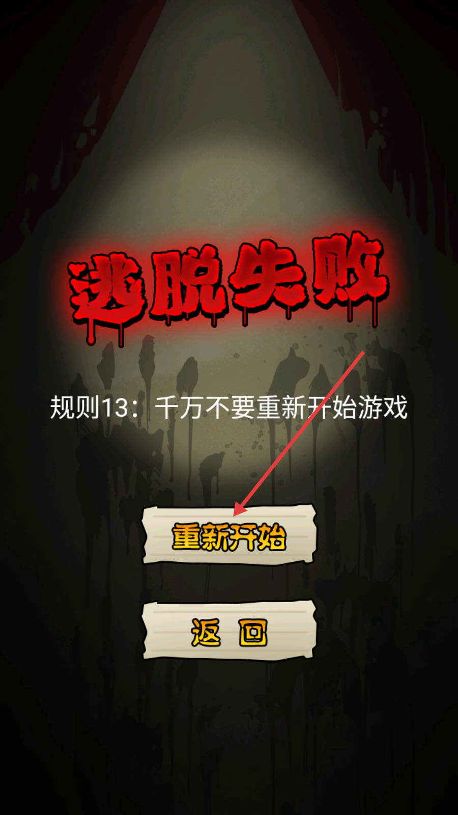4、若逃脱失败,可选择【重新开始】再次挑战,注意遵守规则,避免触发失败条件。