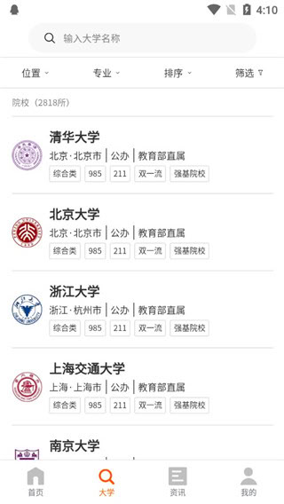 4、若对某一所大学感兴趣,可直接点击大学界面直观了解;