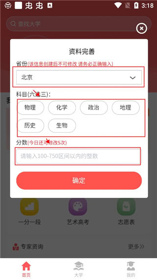 2、完善个人资料,点击“确定”;