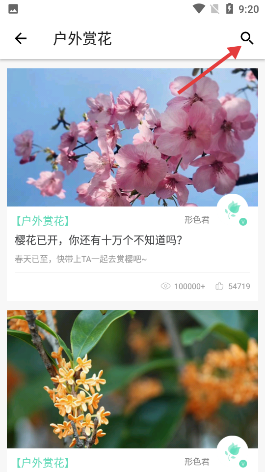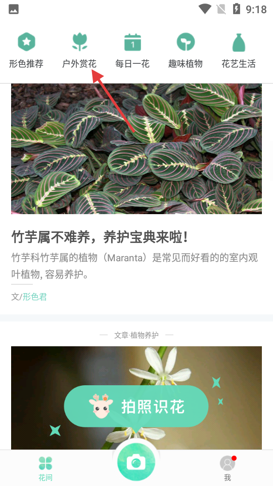 1、在首页点击【户外赏花】,进入户外赏花板块。