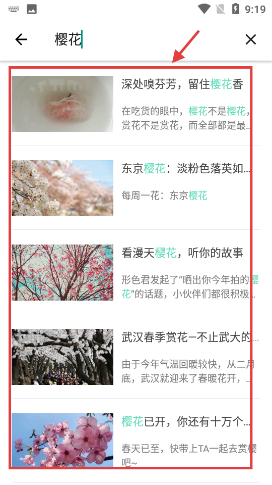 3、在搜索界面输入【樱花】,开始樱花相关内容。