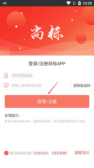 1、打开尚标商标买卖转让app,无账号需先注册方可进入。