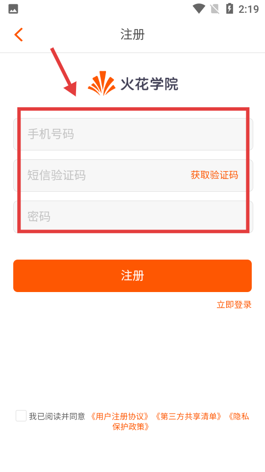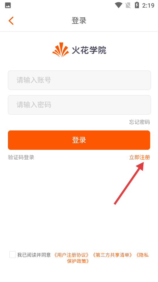 1、初次使用火花学院,在温馨提示页点击【同意】,确认协议条款。