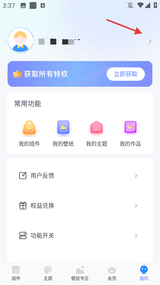 2、点击头像区域右侧的箭头,进入个人信息界面。