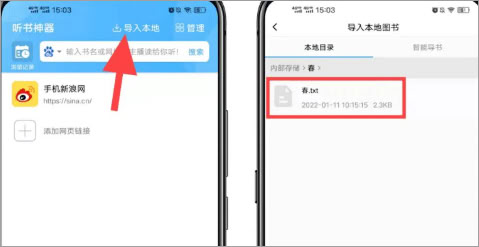 1. 打开 app,点击首页 “导入本地”,再导入图书,找到下载的书籍文件。