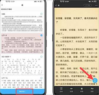 2. 选正确文件编码,导入确定,即可导入书籍。