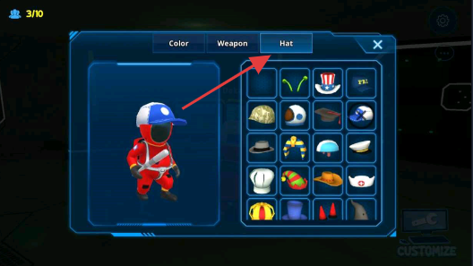 1、进入角色定制界面,点击【Hat】选项,从帽子库选款式,搭配独特外观。