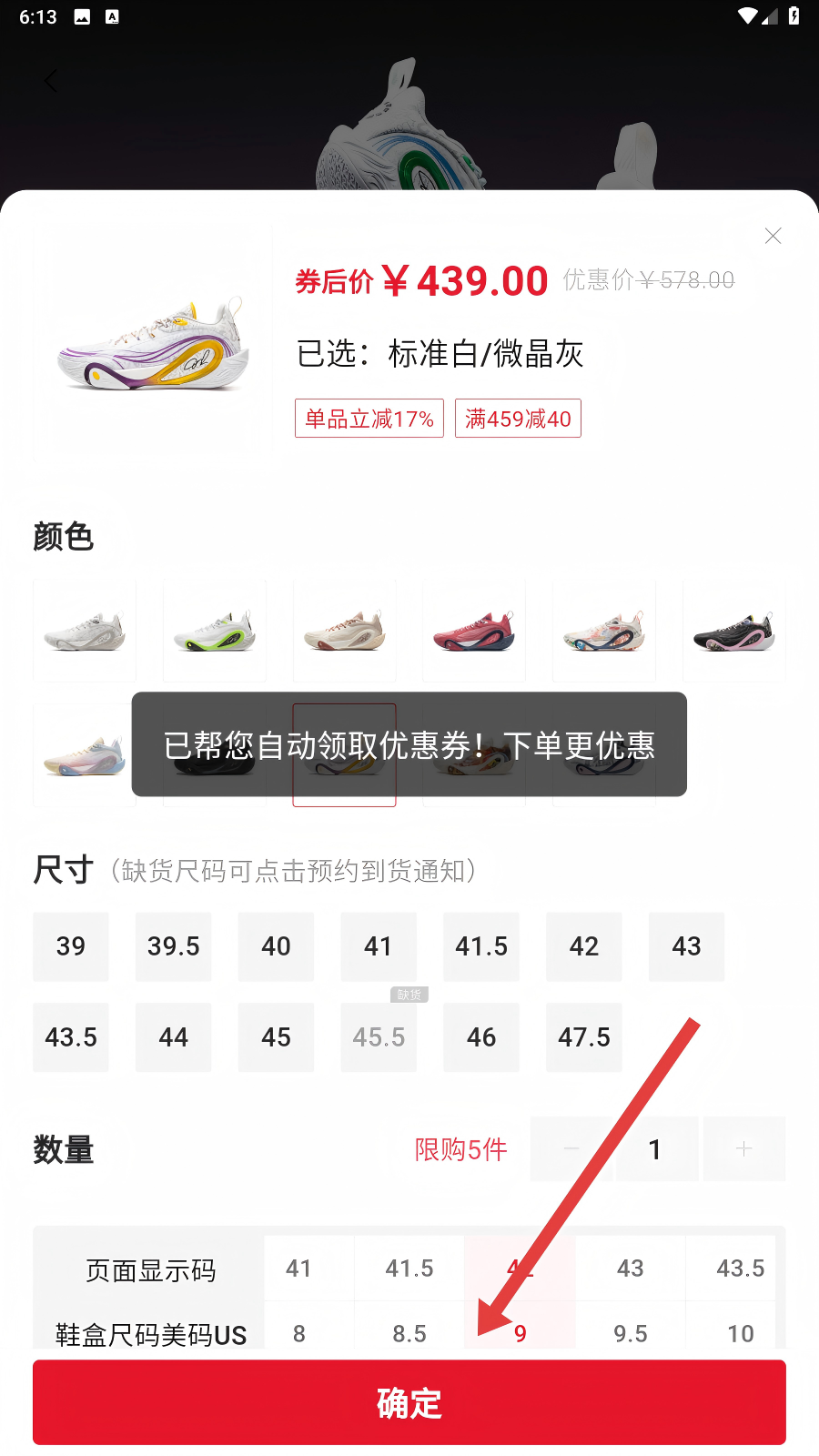 4、确认商品信息后点击【确定】,再走支付流程,这样就能顺利买到李宁正品啦。