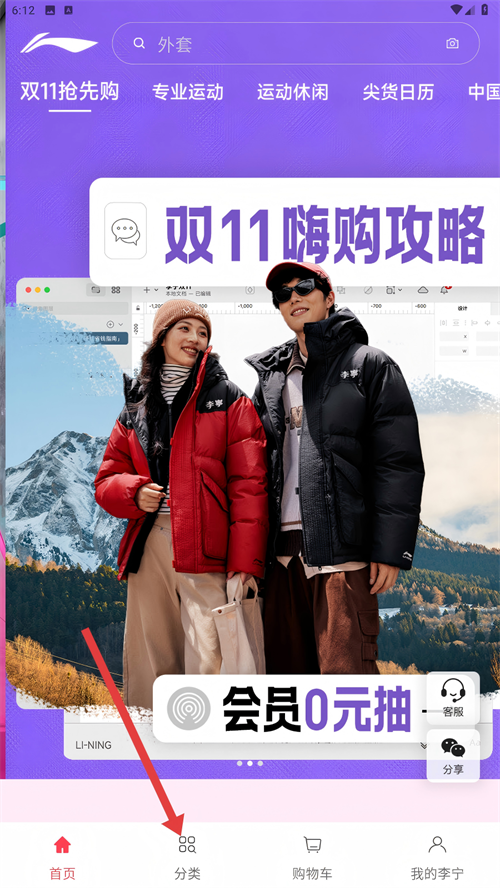 1、打开李宁App,进入底部【分类】界面,这里展示的都是官方推荐商品,是购买正品的基础入口哦。
