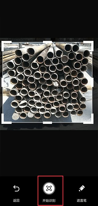2、对准钢管进行拍摄,按下 “开始识别” 按钮。