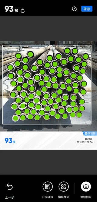 数钢管APP是一款专为建筑、物流等行业设计的智能计数工具,利用AI图像识别技术,能快速统计钢管、钢筋等管材数量,提升点数的效率。具备高精度算法,能适应复杂环境下的计数需求,如光线不足、钢管密集堆放等场景。通过批量拍照、云端同步等功能快速生成统计报表,并导出Excel、PDF格式,方便后续对账、管理。