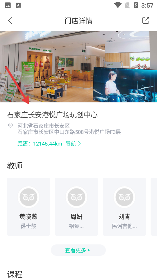 4、可以点击【查看更多】,浏览该门店的全部课程和师资。