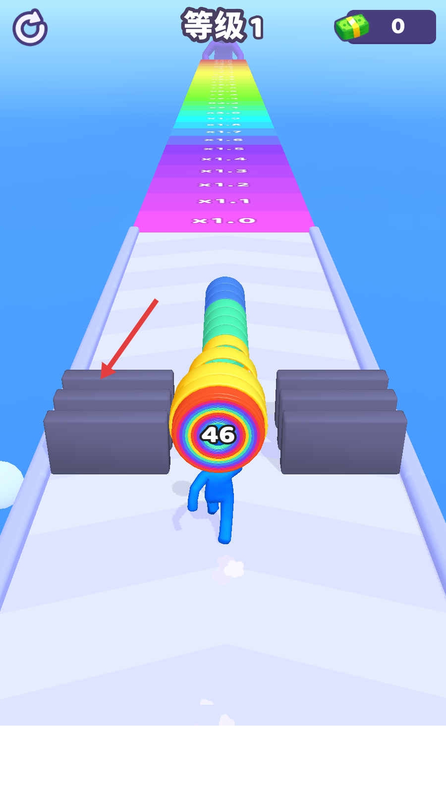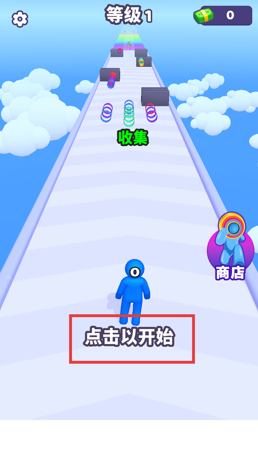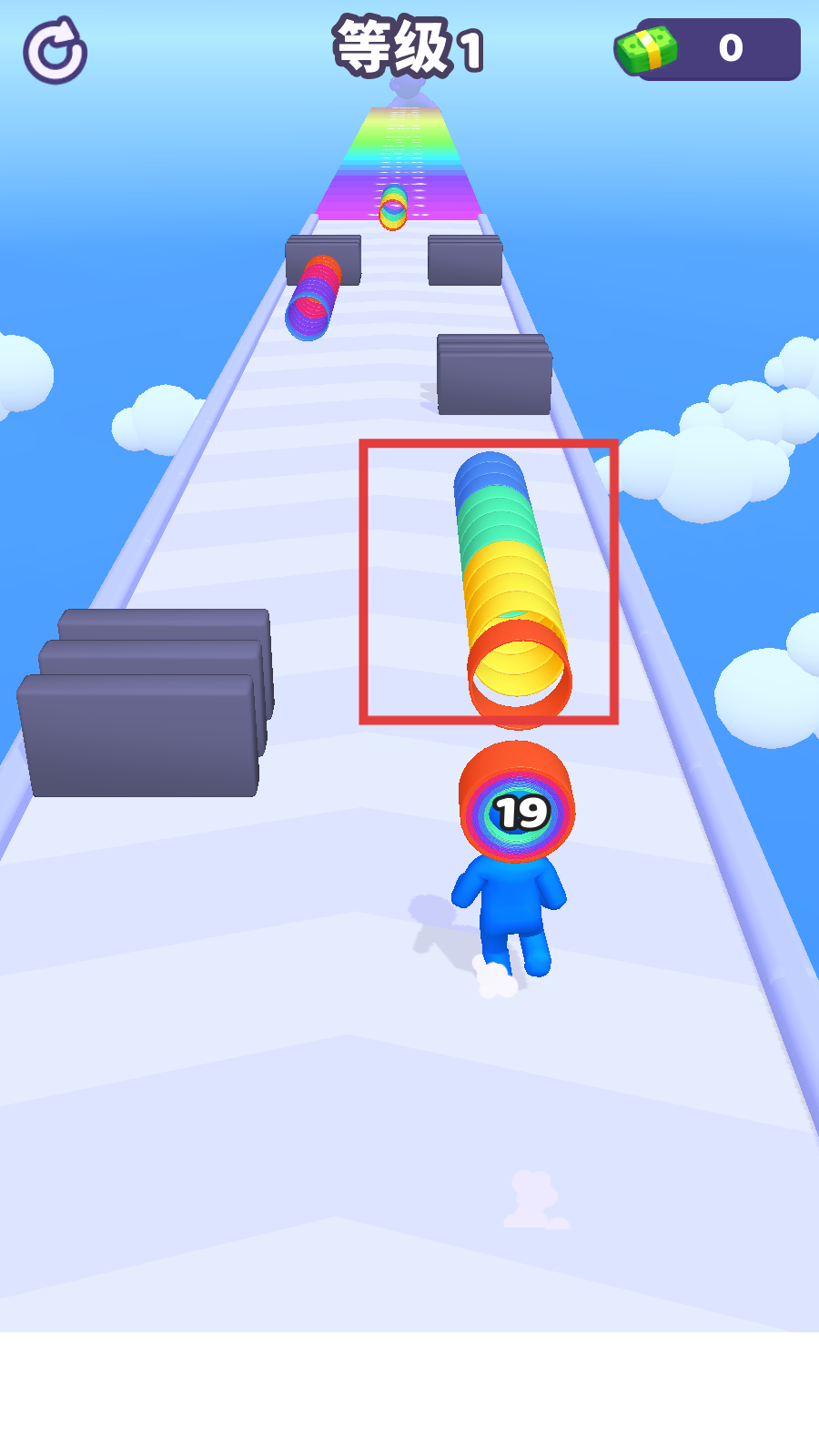 2、在跑道上收集彩色的圆环,让角色头顶的圆环数量增加。
