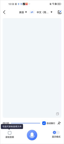 2、同声传译界面左下角可勾选录制音视频选项,实现音译互换,即将外语语音录制并翻译成所需语言。