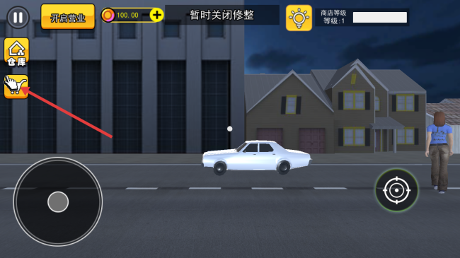2、在超市外场景,可点击【仓库】图标,查看或管理仓库中的物品,为超市经营储备资源。