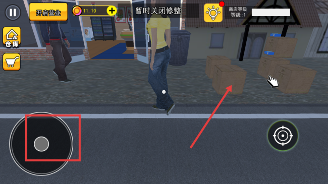 3、利用左侧移动控制区域,操控角色移动,靠近纸箱等物品,可进行相关互动操作,推进游戏进程。
