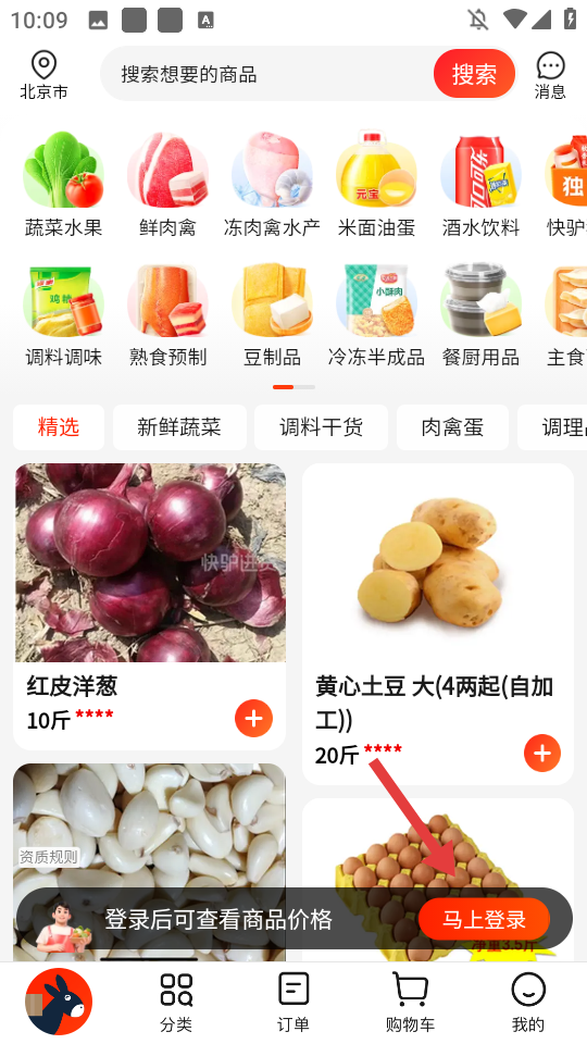 1、商品选购:浏览分类清晰的商品展示页面,通过筛选功能快速定位所需食材,查看详细参数后加入采购车。