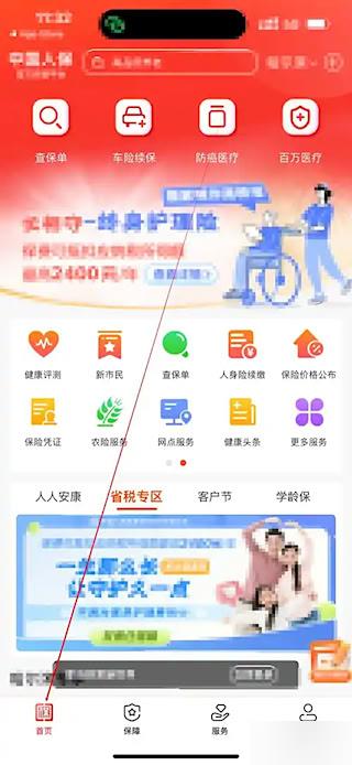 1、打开中国人保 APP,在界面底部左侧找到 “首页” 选项并点选。