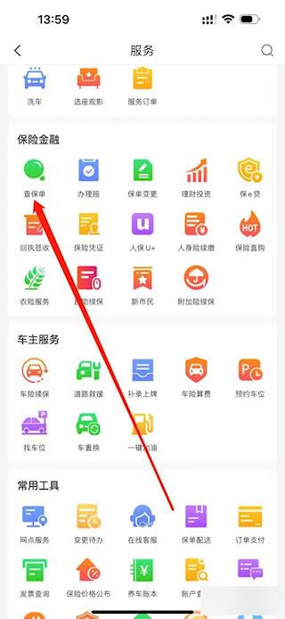 3、在随后出现的 “服务” 界面中,找到并点击 “查保单” 选项进入相应功能页面。