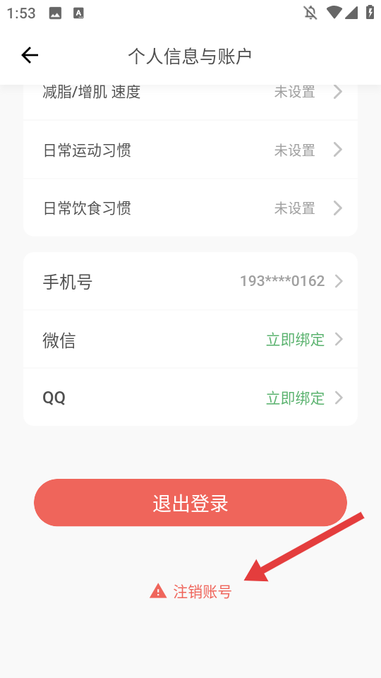 2、在个人页面点击右上角箭头,进入个人信息与账户界面。