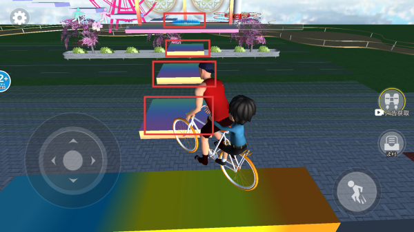 3、遇到彩色平台时,我们要算好间隔,骑车平稳通过,注意把控方向和速度,到达前方蓝色区域,别让父子摔下来呀。