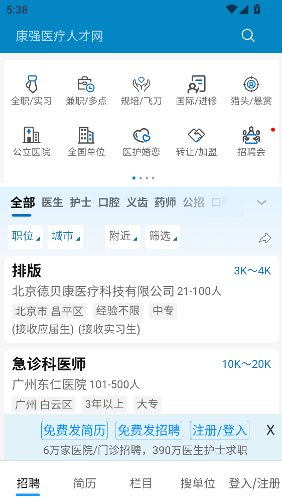 1、提供医疗行业招聘与求职服务,涵盖多种岗位类型和医疗机构。