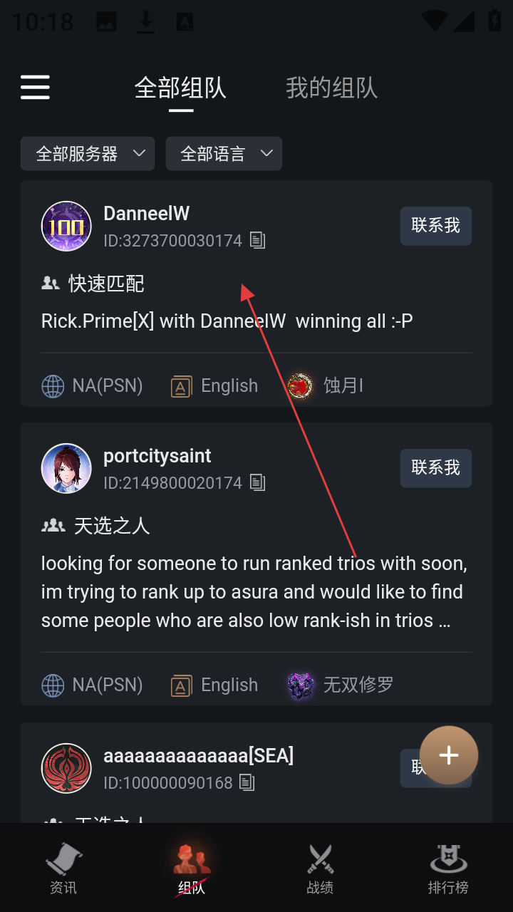 2、在组队页面点击【目标队伍】,进入队伍详情页面。