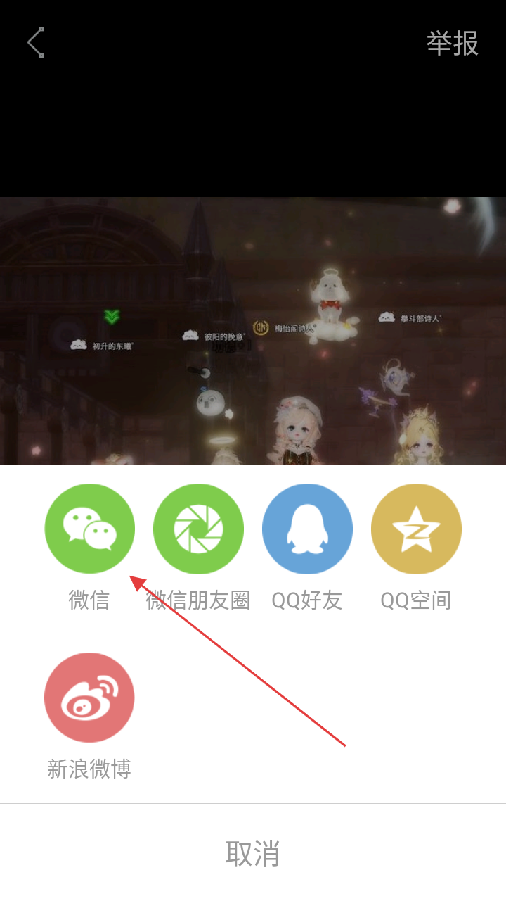 4、在分享选项中选择【微信】,完成动态分享操作。