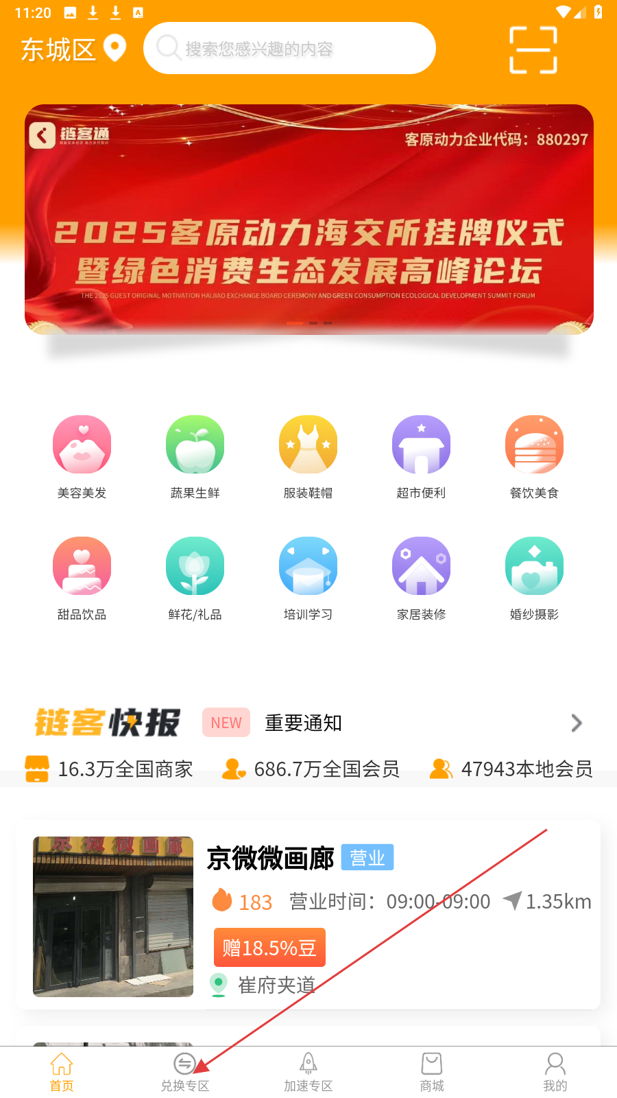 1、点击底部导航栏【兑换专区】,进入商品兑换页面。
