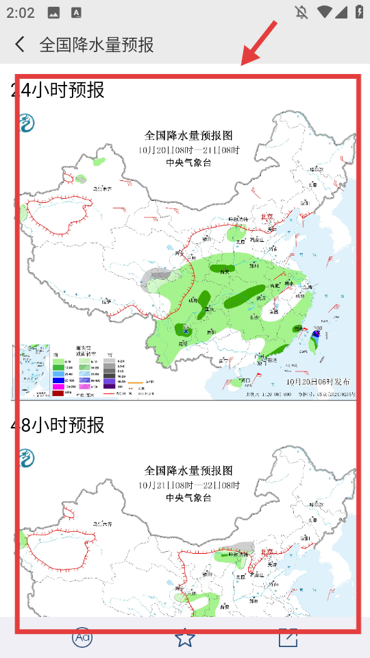 3、即可查看24小时、48小时等时段的全国降水量预报图。