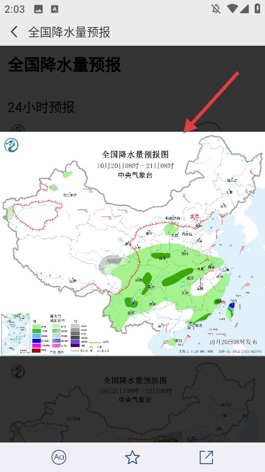 4、点击图片,可以更加清楚的了解当前降水分布。