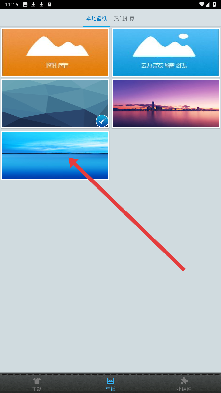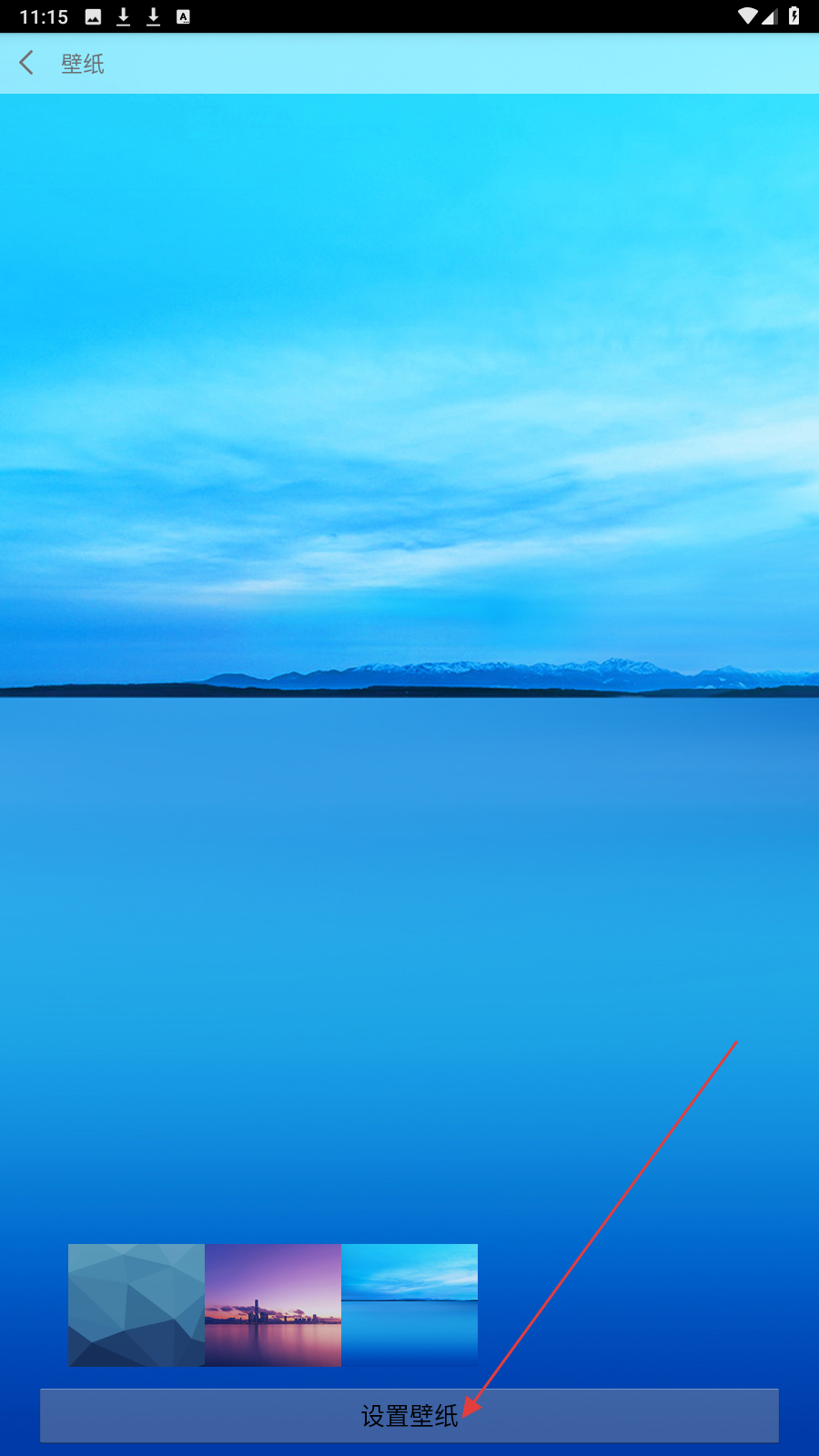 3、在壁纸列表中选蓝色系壁纸,点击对应缩略图,进入预览设置界面。