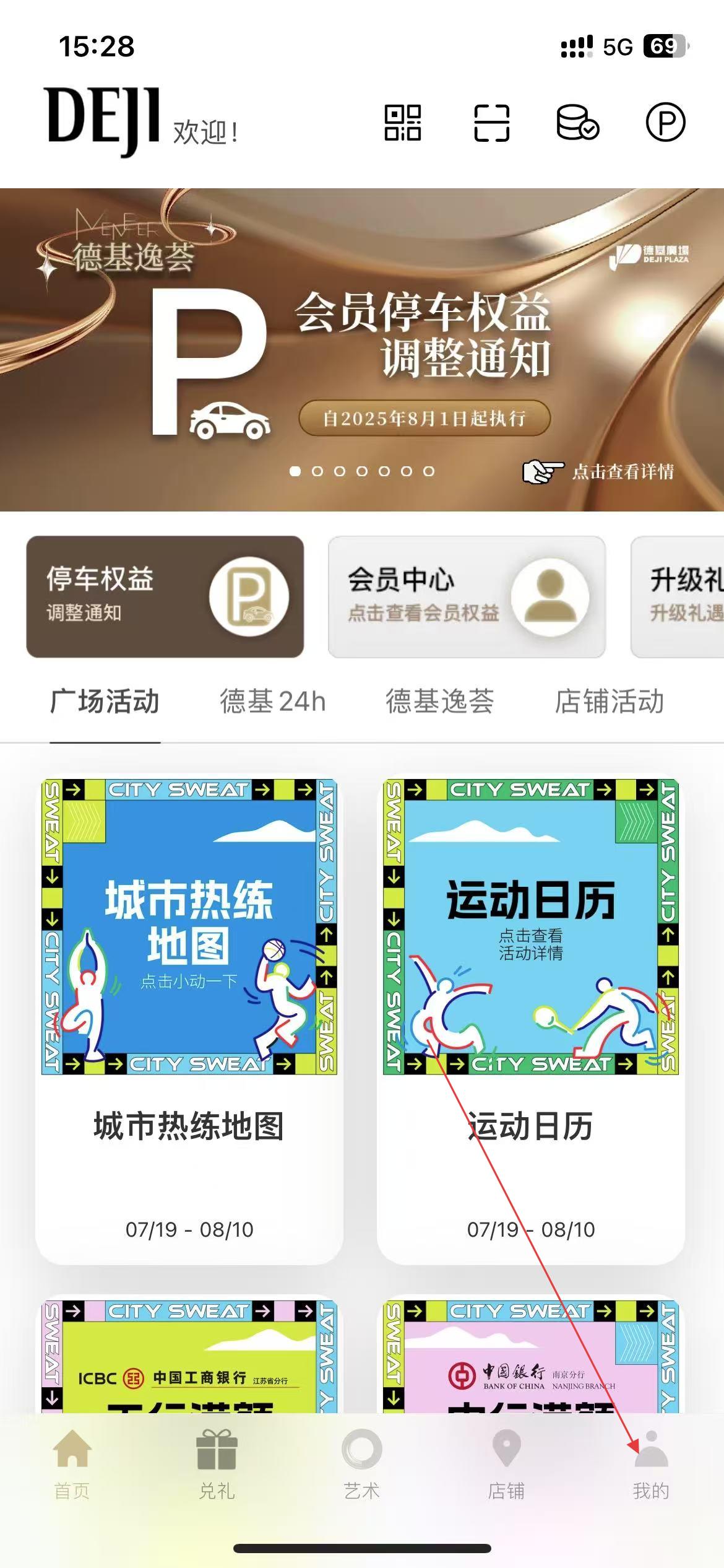 1、打开德基广场应用,点底部【我的】,进入个人中心页面。
