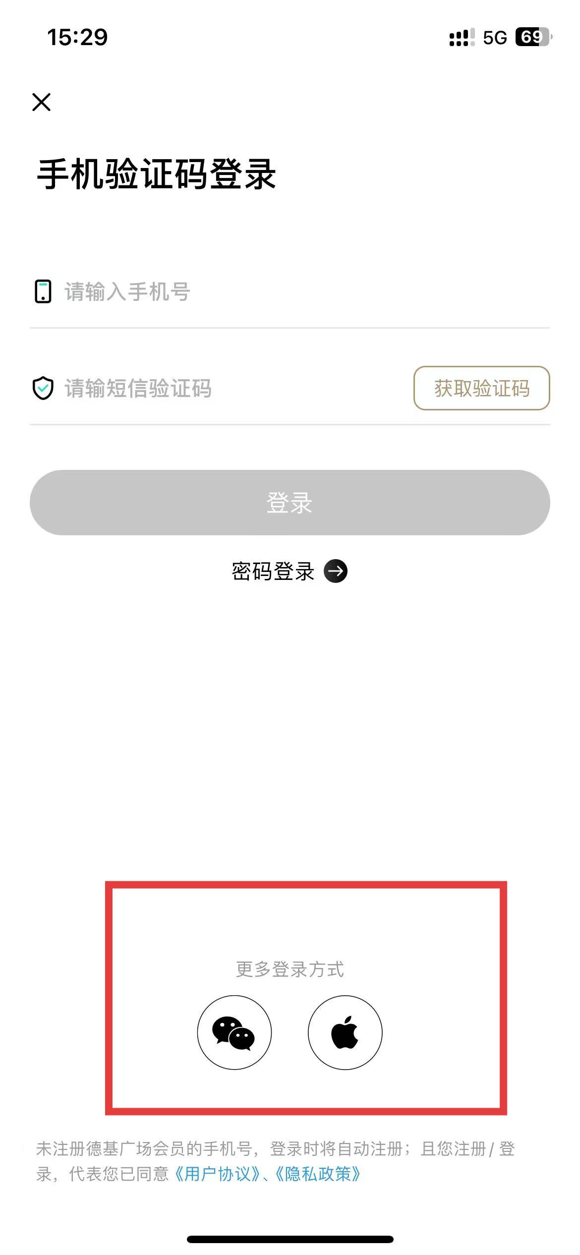 3、在登录页,选【微信】或【苹果】等登录方式,进入一键登录页面。