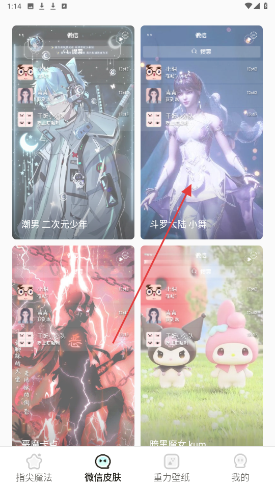 2、在微信皮肤页,选心仪的皮肤如《斗罗大陆小舞》,点缩略图进预览界面。