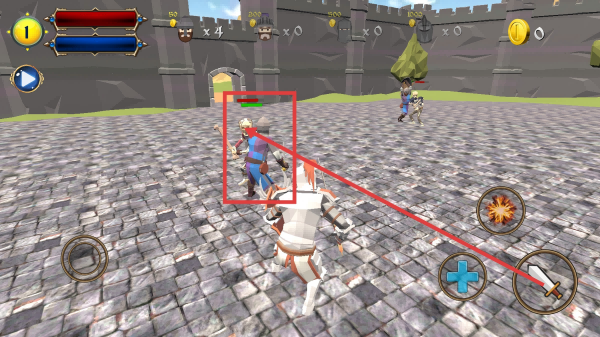 3、遇敌人优先锁定红框目标,连续点击【攻击按钮】输出,配合技能快速击败,积累金币与经验。