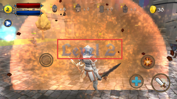 4、击败敌人后升级至【Level-2】,金币增至30,继续推进关卡,利用新能力挑战更强敌人。
