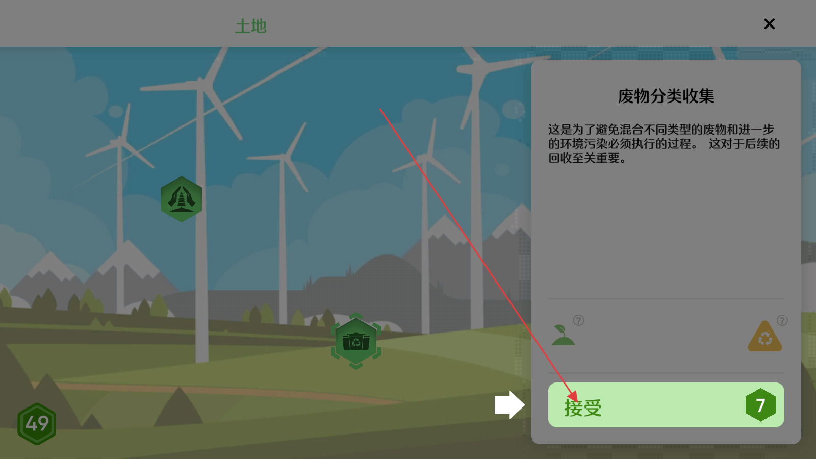 2、点击左下角【项目】,浏览土地任务如废物分类收集。