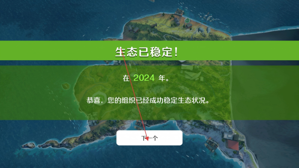 4、生态稳定后,点击【下一个】,解锁新区域或阶段,持续守护。
